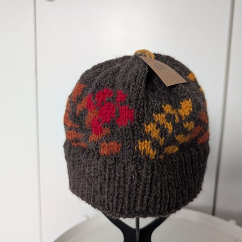 Pakkaskeleihin lämmin käsinneulottu & huovutettu pipo suomenlampaanvillasta, irroitettava tupsu. Värjäämätön hyvin tumma harmaa (lähes mustaan taittava) vaaleilla raidoilla (vaalean lampaan värjäämätön villa).