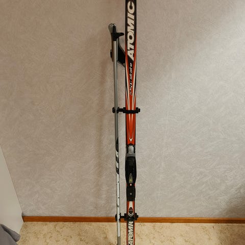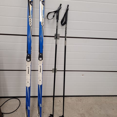 Pari kertaa naisen käytössä ollut suksipaketti. Porkat 140cm.
