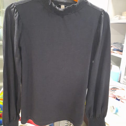 Pompbeluxin musta paita röyhelöillä