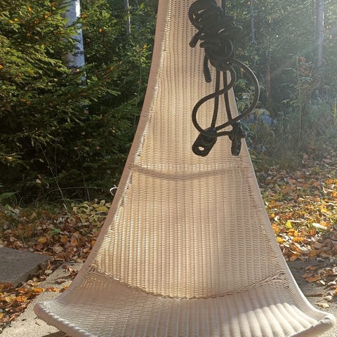 Myydään kuvan mukainen riippukeinu jalaksella maalattu valkoiseksi spraymaalilla ollutkin alunperin valkoinen pidetty parvekkeella myydään ilman pehmustetta huomenna kun päivä kirkastuu laitan kuvan siitä hinta 45 euroa vain haku maksu käteisellä