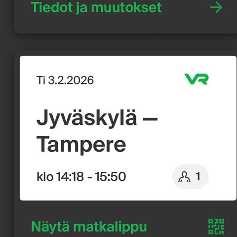 Tampere-Jyväskylä 2.2 klo 7.06-8.43