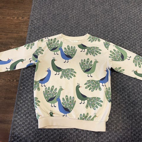 Hyväkuntoinen violetin sävyinen collegepaita.