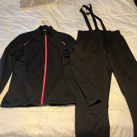 Hieno Rukka-hiihtoasu. Yläosa ja alaosa. Kisa-asu. Koko M. Käy myös juoksuasuna.