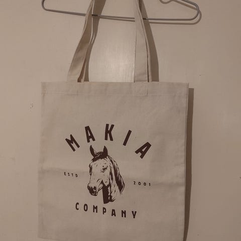 Makia Life is a hard romance kangaskassi. Reilu koko, jämäkkä kangas, printti moitteeton. 70% puuvillaa. Oikein hyvä kunto.