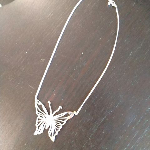 Perhos kaulakoru. Pituus 130,säädettävissä 140. Perhosia ja oranssinpunaisia kiviä.