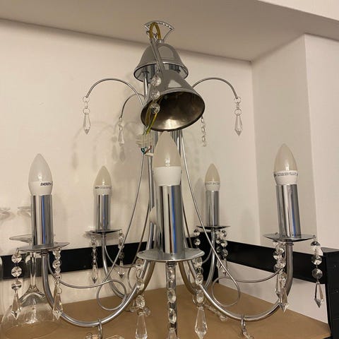 Kristallein koristeltu lampetti kynttilälle