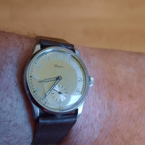 Siisti mekaaninen vedettävä aito Stova Vintage rannekello.Toimiva, kone käy siististi terveellä käynnillä. kellonkeräilijän jäämistöä,2023 vaihdettu lasike+vetonuppi.Ikä? voi olla 50-60 luvulta,pikkusekuntti.Koko nuppiin 33mm. Katso kuvat ja muutkin myyntini Torissa.Kellossa on kätevä venyvä laatu ranneke.