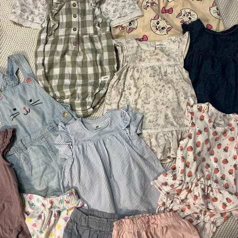 11-osainen siistikuntoinen vaatepaketti vauvalle. Koko 74-80. Hempeitä värejä, söpöjä kuoseja. Vaatteet oikein hyvässä kunnossa. Merkkejä mm. Newbie, Disney, Paapii, Polarn O. Pyret (POP).
