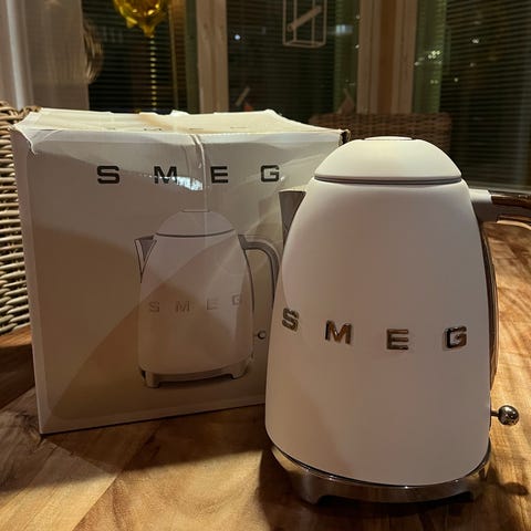 Smeg kahvinkeitin vaaleansininen väri. Laite on hyvässä kunnossa.