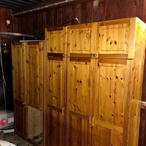 Yksi kaappi jäljellä, kunto ei täydellinen, toisella sivulla jälkiä.