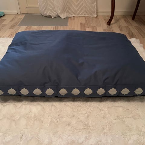 Upouusi supermuhkea koiranpeti. Kangas on sammettimaista huonekalukangasta. Keskiosan tyyny voi kääntää. Reunojen pehmusteet saa pois pesua varten. Ovh tälle on 69.90€. Otettu muovista ainoastaan kuvausta varten.