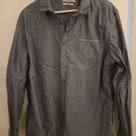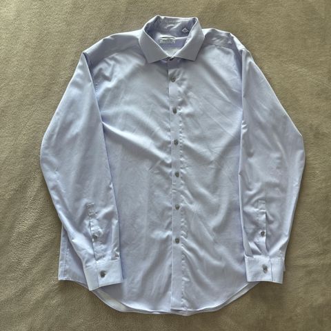 Nopeasti kuivuva ja rypistymätön kauluspaita. 63% puuvillaa ja 37% kierrätettyä polyesteriä. Puettu kerran kaupassa.