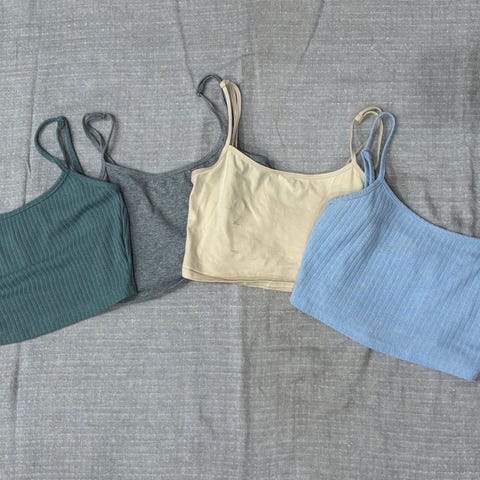 Shein naisten toppi, koko XS. Kuvassa kolme eri kuosia: seeprakuosi, kukkakuvio ja leopardikuosi. Topit ovat olkaimellisia ja valmistettu kevyestä materiaalista.