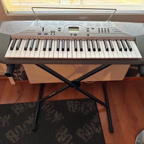 Myydään 1.5vuoden ikäinen otsikonmukainen vain kevyessä käytössä ollut laadukas musta sähköpiano,nuottitelineen ja virtalähteen ,muuntajan kanssa. Tällä pianolla on akustisen pianon tuntuinen vasarakoskettimisto, täyspitkä 88koskettimen koskettimisto. Kosketusnäyttö,paljon ääniä ja toimintoja. Hyvässä kunnossa . Myydään tarpeettomana.