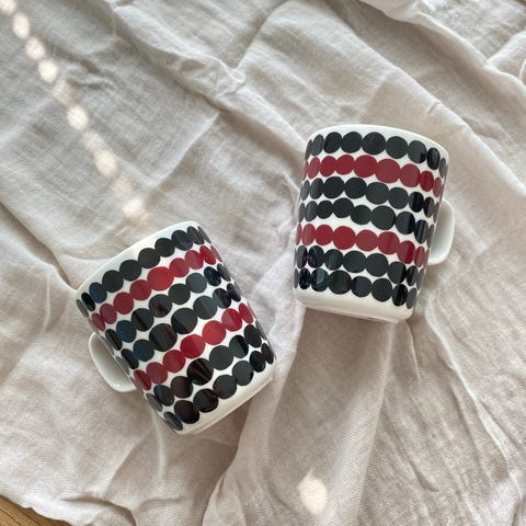 Myydään 2kpl erittäin hyväkuntoisia Marimekon Siirtolapuutarha-sarjan mukeja. Laadukasta posliinia, sopii päivittäiseen käyttöön!