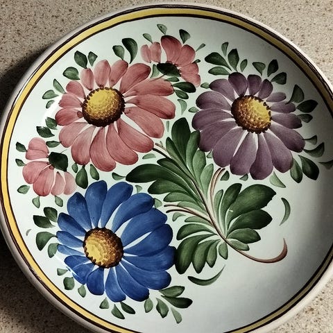 Kaunis Ruotsin kirkoista kertova koristelautanen.