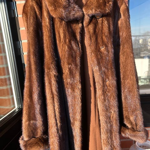Priima kuntoinen Minkkiturkki. Musta. Mita;, selän pituus 108 ja leveys hartia 54 ja hihanpituus 60 cm. Mustavuori ja etutaskut. Pieni kaulus.