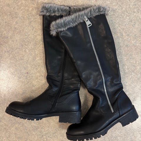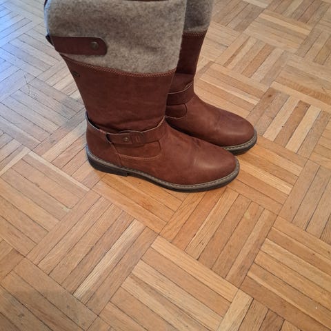 Talvisaappaat koko 40. Haljasmokka pinta, Pitkä vetoketju sivulla.