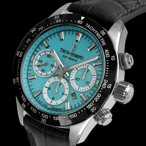 Tecnotempo on italialainen tuotemerkki ja rekisteröity tavaramerkki.Tecnotempo on italialainen brändi, joka yhdistää laadun ja muotoilun jokaisessa kellossa – niille, jotka arvostavat ajattoman tyylin.Jokainen malli, joka on valmistettu korkealaatuisista osista, edustaa täydellistä kohtaamista perinteen ja innovaation välillä, niille, jotka elävät aikaa tyylillä.Tässä huutokaupassa tarjoamme:Tecnotempo - "Chrono Round" *Suunniteltu ja koottu Italiassa* - Swiss Auto Movt - Limited Edition 100 kpl - 200 metriä vesitiivisTämä juuri markkinoille julkaistu uusi malli on tällä hetkellä myynnissä yksinomaan Catawikissa, koska me olemme tuotemerkin omistajia.Uusi, kotelolla ja kahden vuoden virallinen takuu.Swiss Automatic Movement Landeron 73****TÄRKEÄÄ: Huomaa, että tämän Landeron-automaattisen kronografin liike voi kuulostaa kovalle, jos automaattisen liikkeen heiluri paino pyörii nopeasti.****Kotelon läpimitta on 41 mm ( ilman kruunua ) ja paksuus 16 mm.Ruostumaton teräs 316LAutomaattinen kronografi (enintään 30 minuuttia, 12 tuntia)Safiirikristalli3 ruuvikruunuaKiinteä musta keramiikkakehä200 metriä (20 ATM) vesitiivisPäivämäärä (välttääksesi mahdolliset vauriot kellon mekanismiin, älä muuta päivämäärää tai päivää manuaalisesti kruunulla, jos kellon aika on välillä klo 20:00 ja 03:00. Tämä on sääntö, joka pätee kaikkiin päivämäärällä varustettuihin kelloihin).Upea vaaleansininen kellotaulu, jossa valkoiset pyöreät kohokuvioidut laskuritRuostumattomasta teräksestä valmistettu kotelo 316LMusta aito nahkainen ranneke, valmistettu Italiassa.Rajoitettu erä 100 kappaletta.Kotelon halkaisija: 41 mm (ilman koko kruunua)Kotelon paksuus: 16 mmKaistanleveys: 20 mmVedenkestävä: 200 metriä (20 ATM) ja kolme ruuvattavaa kruunua.Kellon ympärysmitta on noin 21 cm.Paino: noin 105 g.Laatikko, takuu ja käyttöohjeTavarat pakataan huolellisesti ja lähetetään Italiasta kuriirilla (seurattuna ja vakuutettuna).