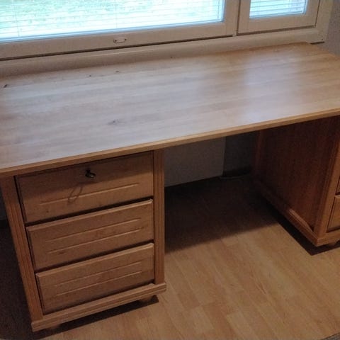 Vanha,, kokopuinen kirjoituspöytä edullisesti pois muuton tieltä. Pituus noin 120 cm, leveys noin 60 cm. Nopea nouto etusijalla.