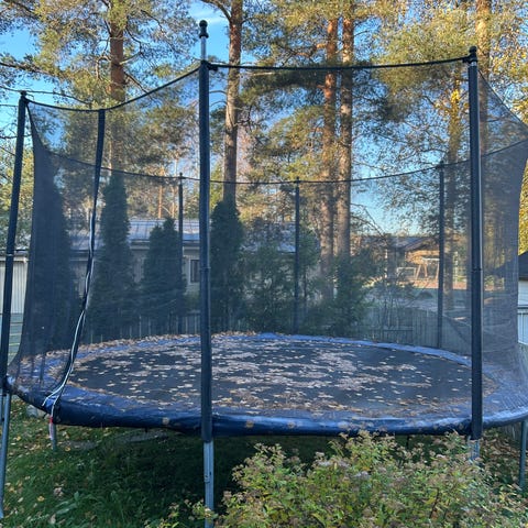 Myyntiin viime keväänä ostettu, kesän pompittu Salta Cosmos trampoliini.