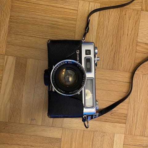 Yashica filmikamera, jossa on 40 mm objektiivi. Kamerassa on perinteinen filmikameran rakenne ja se soveltuu filmi- eli analogiseen valokuvaukseen.
