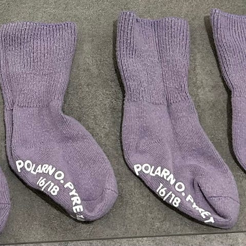 Viisi paria sukkia, joista kolme otsikon mukaista pienempää ja kaksi isompaa kokoa. Siniset jarrusukat oikein hyvässä kunnossa, pientä nukkaa. Harmaissa enemmän nukkaa. Lisäksi sukkikset, joissa jarruja polvissa ja jalkapohjissa