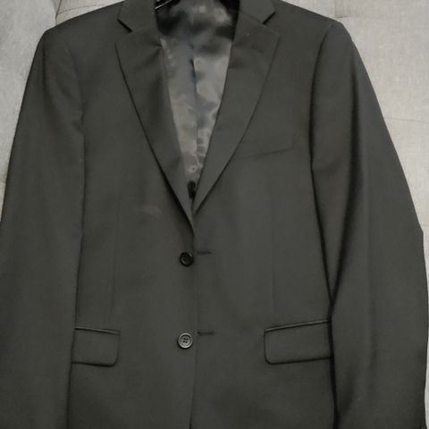 Puku.Takki, housut ja vyö. Kerran käytetty. Dressman. Takki koko 50. Housut koko 33/30. Vyö 32-34. Musta. Uudenveroinen.