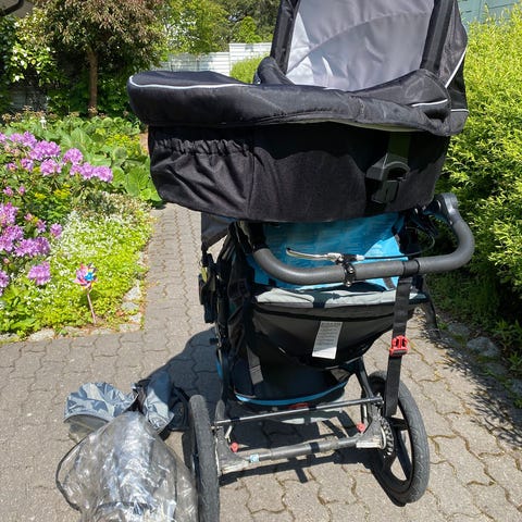 Britax bob juoksurattaat sekä kantokoppa ja adapteri, jolla kopan saa kiinnitettyä. Rattaat ovat kolmirenkaiset ja etummainen rengas on mahdollista lukita pikalukolla vakaamman kulun aikaan saamiseksi juoksulenkin aikana. Kulkee hyvin myös lumihangessa ja jouset takaavat pehmeän menon epätasaisemmallakin alustalla.