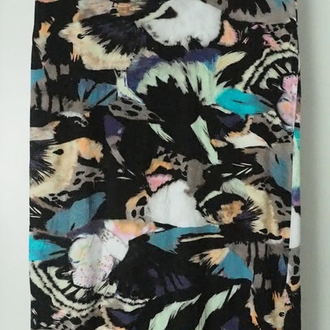 Kaunis kukkaishame, jossa vuori puoliväliin saakka. Kiva vyö. Pituus 75cm. Kunnossa ei ole mitään huomautettavaa. Kulkeutuu esim Ideaparkiin.
