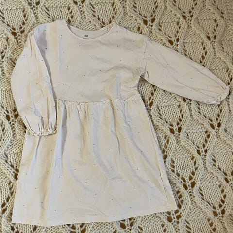 H&M mekko, koko 98. Mekko on valmistettu puuvillasta ja siinä on kirjavat väripisteet. Vielä hyväkuntoinen seuraavalle käyttäjälle, ruttuinen vain säilytyksestä.