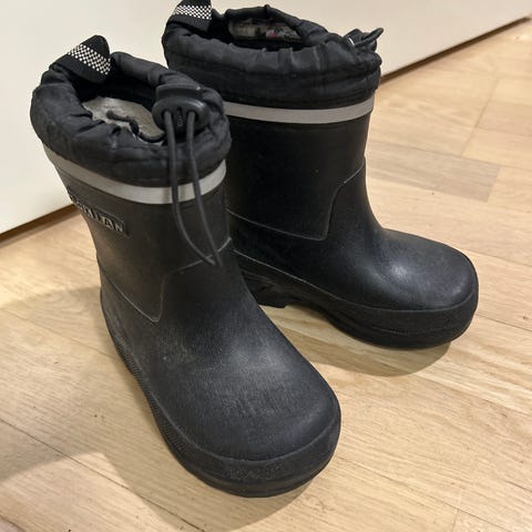 Nokian talvikumisaappaat koossa 25. Toimivat ja vielä käyttökunnossa, vaikka ulkopinnassa näkyykin paikoin värjäymää.