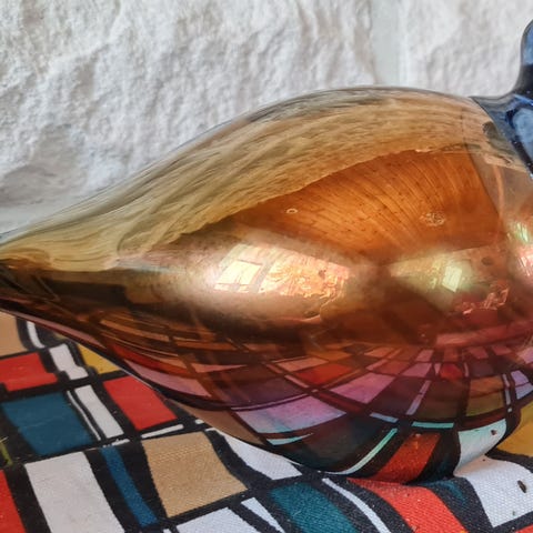 Kaunis Art Glass lasinen lintu. Korkeus Noin 4 cm ja pituus noin 6 cm. Ehjä kuvien mukainen kunto.
