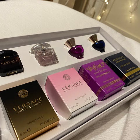 Myydään settinä 3 hajuvettä, kaikista otettu pari kertaa. DKNY be delicious 30ml, Versace bright crystal 5ml (ei suihkepullo) ja Perfume brandin oma versio Versace bright crystal tuoksusta 50ml. Onnistuu postitus postin kautta.
