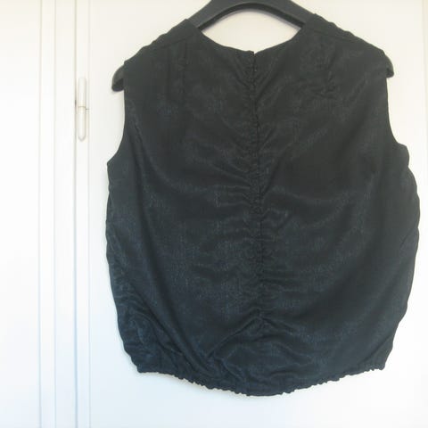 Upea hihaton vintage toppi! Materiaalina kiiltävä, pliseerattu hopeanhohtoinen kangas. Helmassa ja kauluksessa paljettikoristelu. Rento istuvuus. Tähän voi halutessa lisätä olkatoppaukset, jolloin ylös saa vielä enemmän muhkeaa linjaa! Kunto on erinomainen.