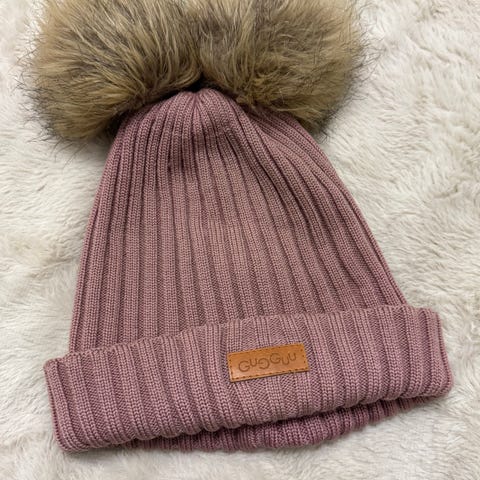 Gugguu lasten pipo vaaleanpunaisena, koko 50. Valmistettu puuvillasta, suunniteltu tytöille. Pipo sisältää korvat peittävät osat ja koristepomppuset.
