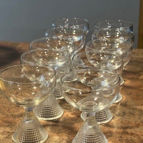 Tapio Wirkkalan Briljant -lasit. Korkeus n. 9,5 cm ja suuaukon halkaisija n. 7,5 cm. Ehjät.