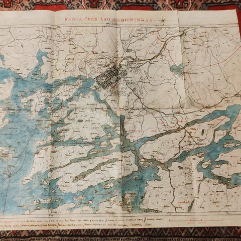 Afrikan kartta on vanha. Useita kauan sitten kadonneita nimiä siirtomaa-aikakaudelta näkyy vielä. Jopa jotain nimiä, joita ei itsekään ollut aiemmin nähnyt-tai ei muistanut. Nyt nimistö on vallan toisenlainen mutta maa näyttää toki samalta. Kartta vaatisi kunnostusta. On kuitenkin hieno, värikäs ja hyvin havainnollinen. Noin 135 leveä, 175 korkea.