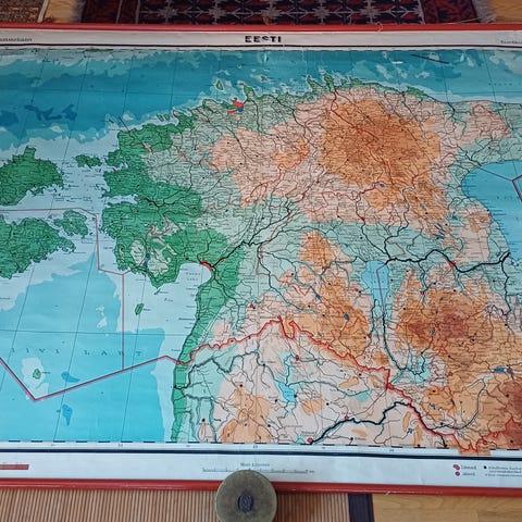 Kainuun kartta ei ehkä hieno eikä niin värikäs. Eikä kovin vanha. Havainnollinen kyllä koska tehty kolmiulotteisen tyyliseksi. Korkeuserot taitavasti tehty. Ihan koko Kainuu tässä ei näy. Puolangasta puolet (miksiköhän). Tämä on ehjä ja siisti (kuten kainuu). Koko noin 40 kertaa 60. Kehystetty ja pleksi päällä. Nämä myydään yhdessä. Hinta siis kahdelle kartalle.
