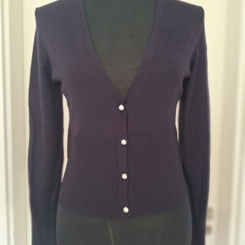 Comma hyväkuntoinen harmaa neuletakki mustilla pitsikoristeilla.