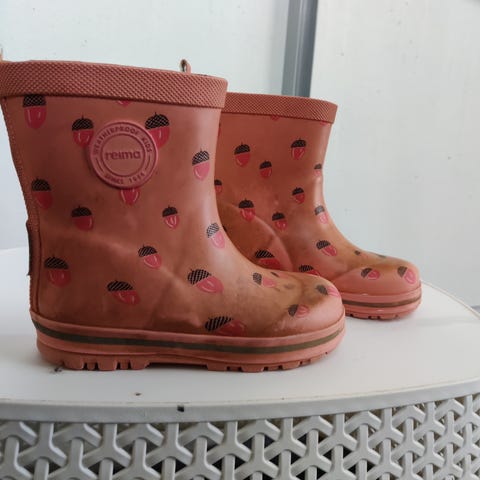 Muuten hyvät ja ehjät saappaat 25koko. Tummentumaa saappaissa on. Ja sisäpuolella repsottaa hiukan kangas.