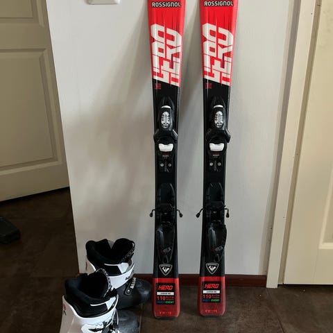 Rossignol Hero lasten laskettelusukset, pituus 110 Look siteet. Näillä sijoituttu mitaleille Italian dolomiiteillä viime vuonna hiihtokoulun pujottelukisoissa :). Näihin sopivat monotkin (22.0-22.5) löytyy pieneen lisähintaan