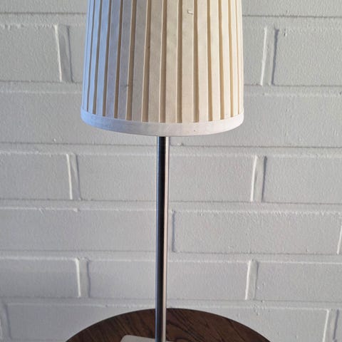 Toimii moitteettomasti, ei käytön jälkiä. Valaisimen mukana saa halutessaan IKEAsta ostetun varjostimen. Jalan korkeus n. 22cm ja varjostimen kanssa korkeus 52cm.