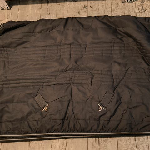 Vähän käytetty ( lämpöarvoa ei ole pesulla pilattu ) tallitoppaloimi. Grammoista en osaa sanoa, ei ole merkitty. Jalkalenkit ja häntälenkki löytyy. Ei pesty eli jotain likaa kyllä löytyy käytön jäljiltä. Tästä edullisesti jollekin palelijalle.