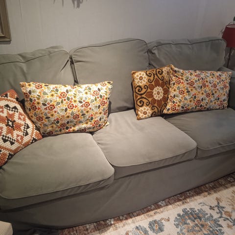 Siistikuntoinen harmaa sohva, ei tahroja istuimissa. Istuinpäälliset juuri pesty. Kuljetus järjestettävissä pääkaupunkiseudulle 20e korvausta vastaan. Tyynyt ja viltti eivät sisälly hintaan.