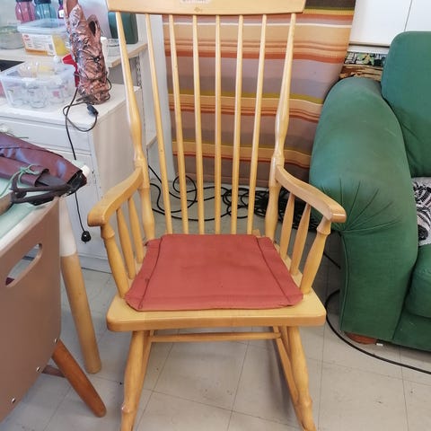 Kotimaista käsityötä oleva koivuinen kiikkutuoli. Hyvässä kunnossa.