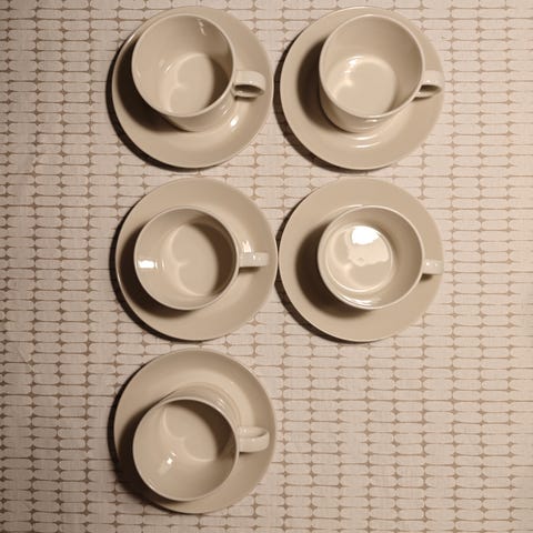 Teema vihreä kahvikuppi+tanssi+pullalautaset 6 kpl. Kermanekka 1 kpl