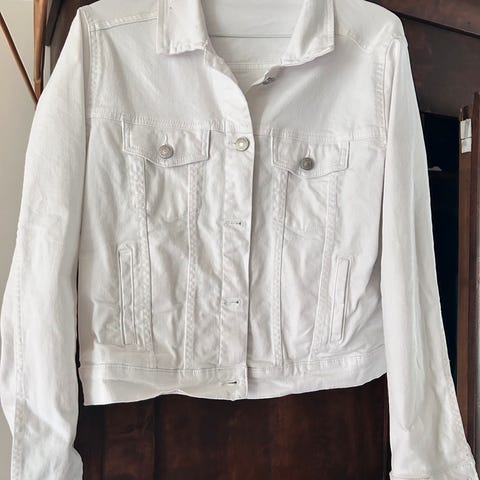 Fransa naisten takki sinisessä värissä, valmistettu puuvillasta + elastaania. Koko 42. Takissa on pitkähihaiset hihat. Kai-kai 49 cm. Vesipestävä.