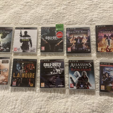 Playstation 3 pelit sisältäen Call of Duty Black Ops, Need for Speed ProStreet, NHL 11, NHL 14, Most Wanted ja Superstars Racing. Pelit ovat fyysisessä muodossa ja sopivat Playstation 3 -pelikonsolille.