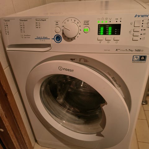 Kone on muuten ehjä ja siisti mutta vuotaa varmaan jostain liittimestä vettä.
